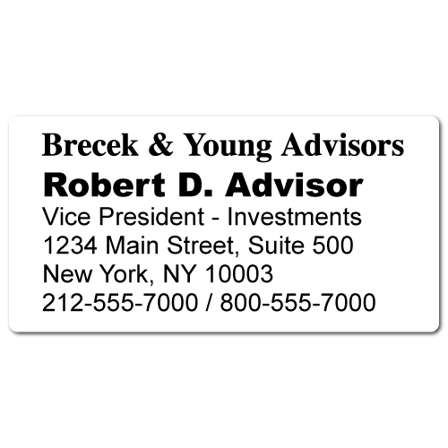 Stickertape™ Labels are just like having your "Brecek & Young Advisors" Business Card on a handy Peel and Stick Label.