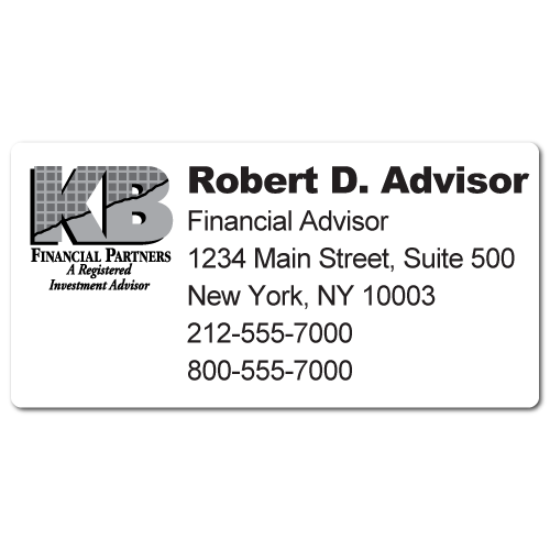 Stickertape™ Labels are just like having your "KB Financial Partners" Business Card on a handy Peel and Stick Label.