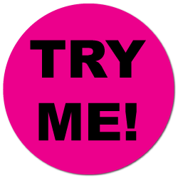 These 1" circle "TRY ME" stickers are printed with black text on a fluorescent pink background. Bright and bold, they are perfect for drawing attention to product testers in retail, craft fairs, or promotional displays. Supplied on rolls for quick and easy application.