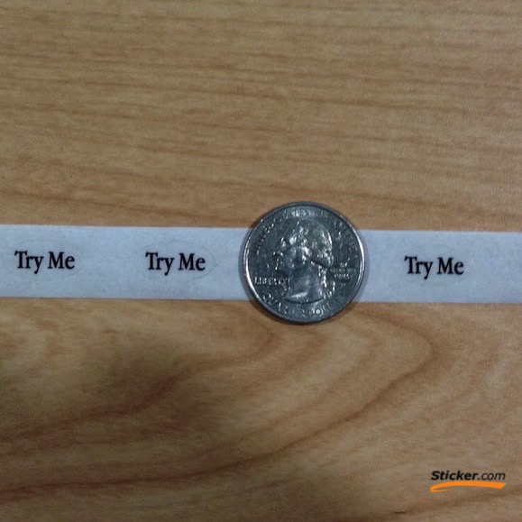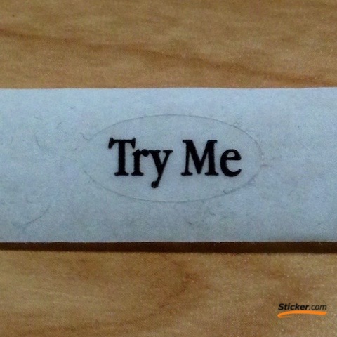 These "Try Me" oval stickers are printed on clear film with black text, making them blend seamlessly onto glass or plastic containers. A subtle labeling option for cosmetics, fragrance samples, or product testers where packaging design should remain visible.