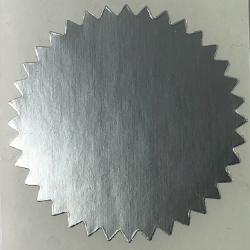 1" Bright Shiny Silver Burst Circle Foil Seals. Add the look of elegance to your Certificates, Awards, Diplomas or just about any type of correspondence.