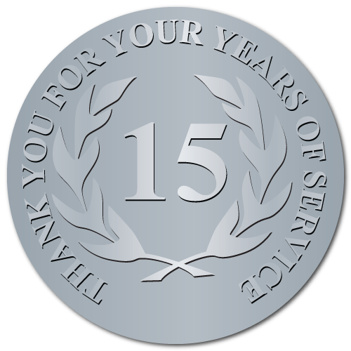 NEW! 15 Years of Service, Foil Stamped & Embossed Award Labels