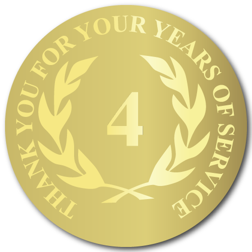 NEW! 4 Years of Service, Foil Stamped Award Labels