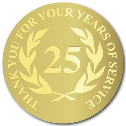 NEW! 25 Years of Service, Foil Stamped Award Labels