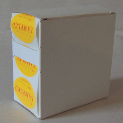 Handy cardboard sticker dispenser boxes. Lightweight, easy to use and they are reusable.