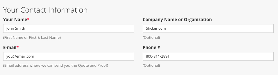 First we need the information to contact you when the proof is ready, our proofs are hosted online and a link is set to you to review your quote, so the first step requires an email address to send the quote to, from time to time your emails are caught by spam filters due to words like "Quote" which make some spam filters think that our proof emails are junk, so it would be good to keep an eye on your spam folder.