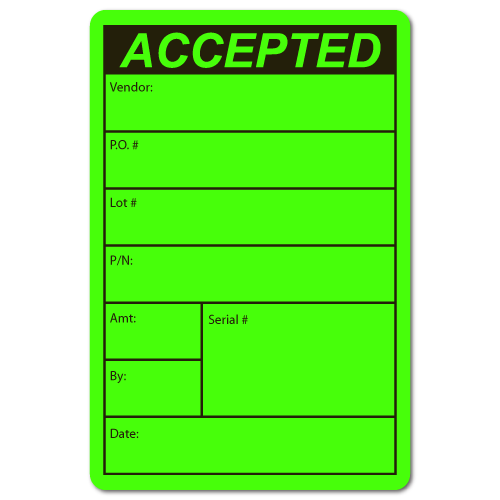 Customers who bought "ACCEPTED, Vendor, Lot # Quality Control Green Dayglo Fluorescent, Roll of 500 Stickers" also bought"