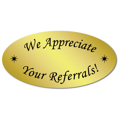 Customers who bought "1 x 2 We Appreciate Your Referrals Gold Foil, Roll of 500 Stickers" also bought"